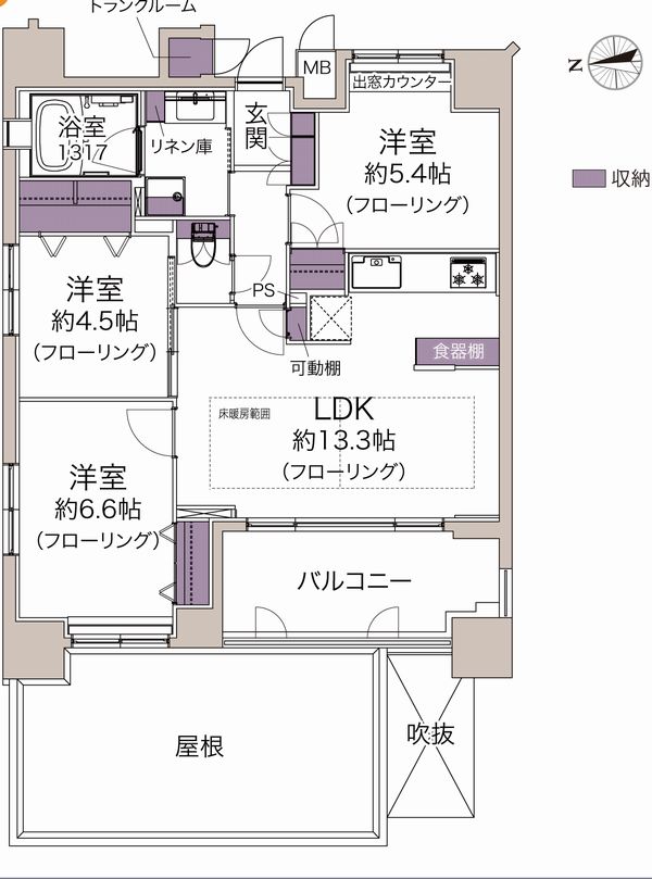 | 交通 | 地下鉄烏丸線 五条駅 6分 | 専有面積 | 64.87u | バルコニー面積 | 8.93u |